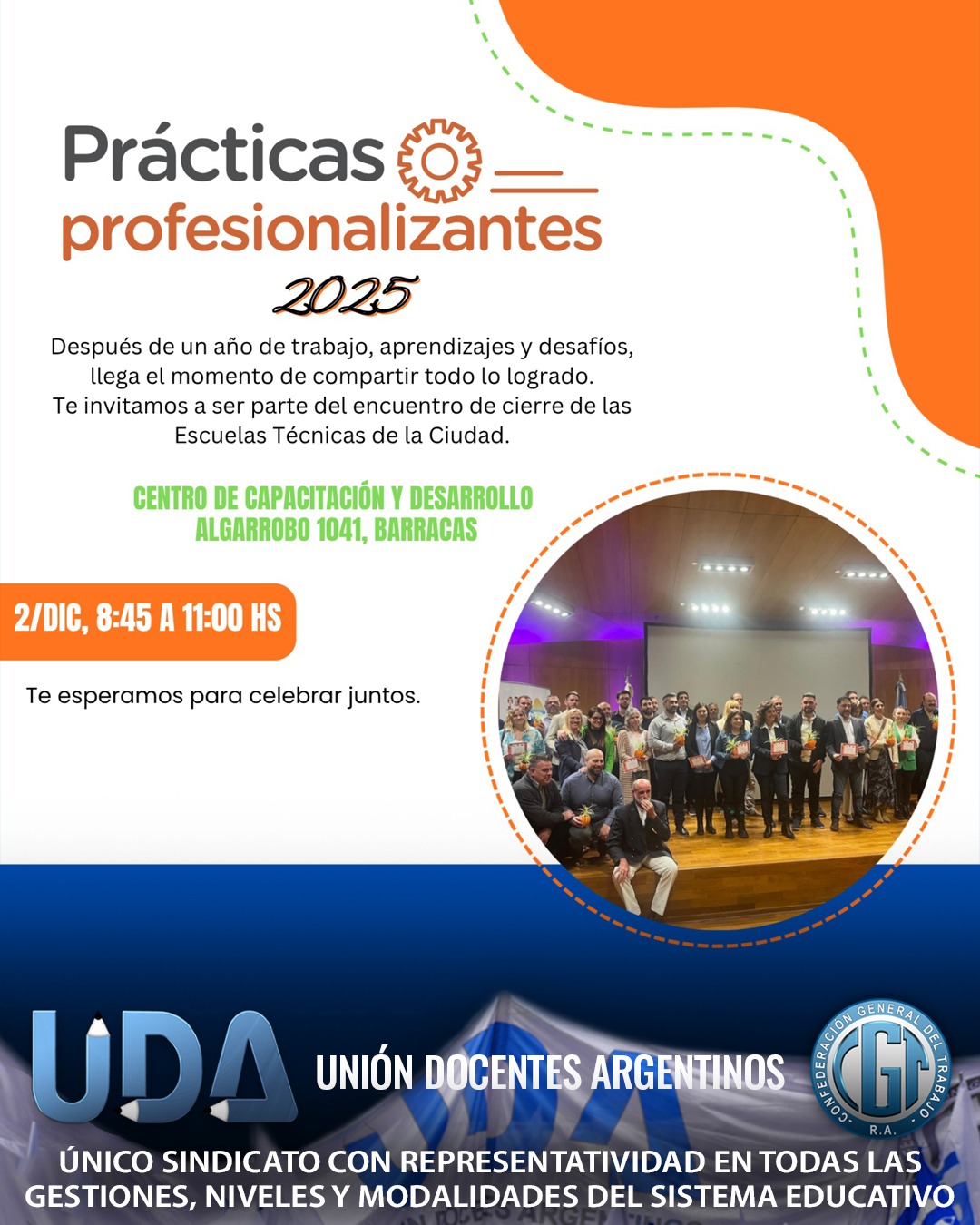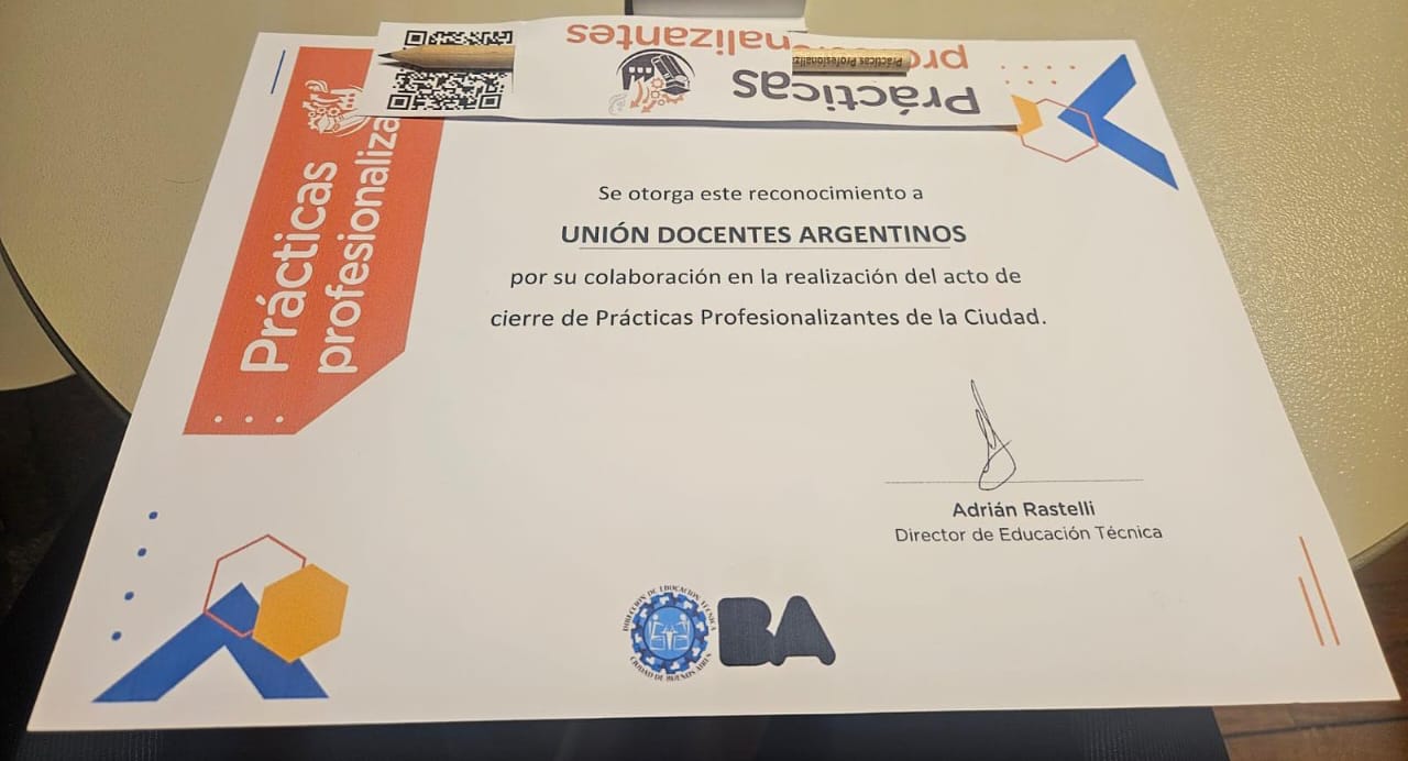 La UDA - Seccional Capital estuvo presente en el acto de cierre de las Prácticas Profesionalizantes de las Escuelas Técnicas de la Ciudad, a través de nuestros dirigentes y con la participación de nuestro Secretario Gremial, Pedro Meneses, donde acompañamos a estudiantes, equipos directivos y docentes.